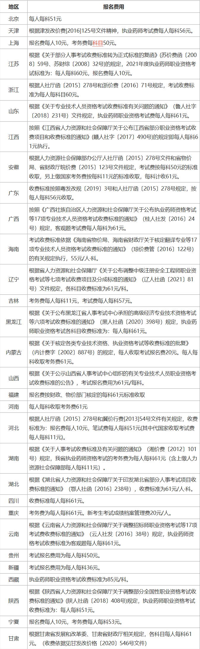 目前还有多省份未公布2022年执业药师考试收费标准,但大家可以参考一下去年的,收费在36-85元之间。